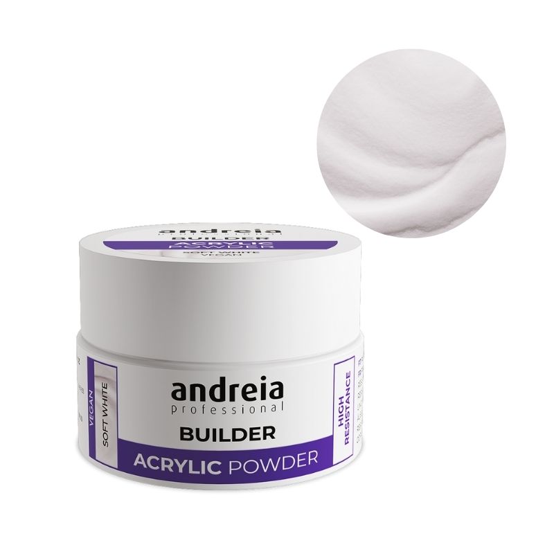 Poudre acrylique Soft White Andreia 20Gr Optez pour la Poudre acrylique Soft White Andreia 20Gr , idéale pour la construction d’ongles avec un effet naturel. Cette poudre offre une résistance élevée et une longue durée de vie, parfaite pour un usage professionnel ou personnel. À utiliser avec le liquide acrylique pour une finition impeccable, elle sèche à l’air rapidement.