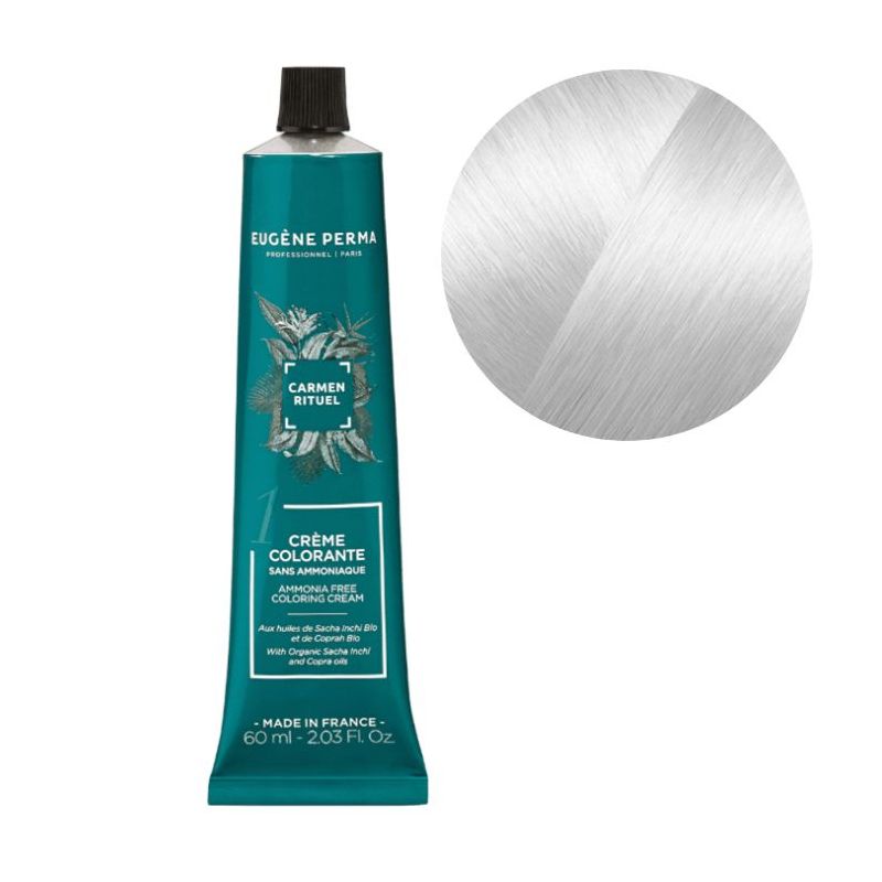 Explorez la Coloration sans ammoniaque Carmen Rituel Cristal Gloss n°G00 d’EUGÈNE PERMA Professionnel, intégrant 95 % d’ingrédients naturels. Cette teinture hybride, sans ammoniaque et sans huiles minérales, protège la fibre capillaire tout en lui offrant une brillance exceptionnelle.