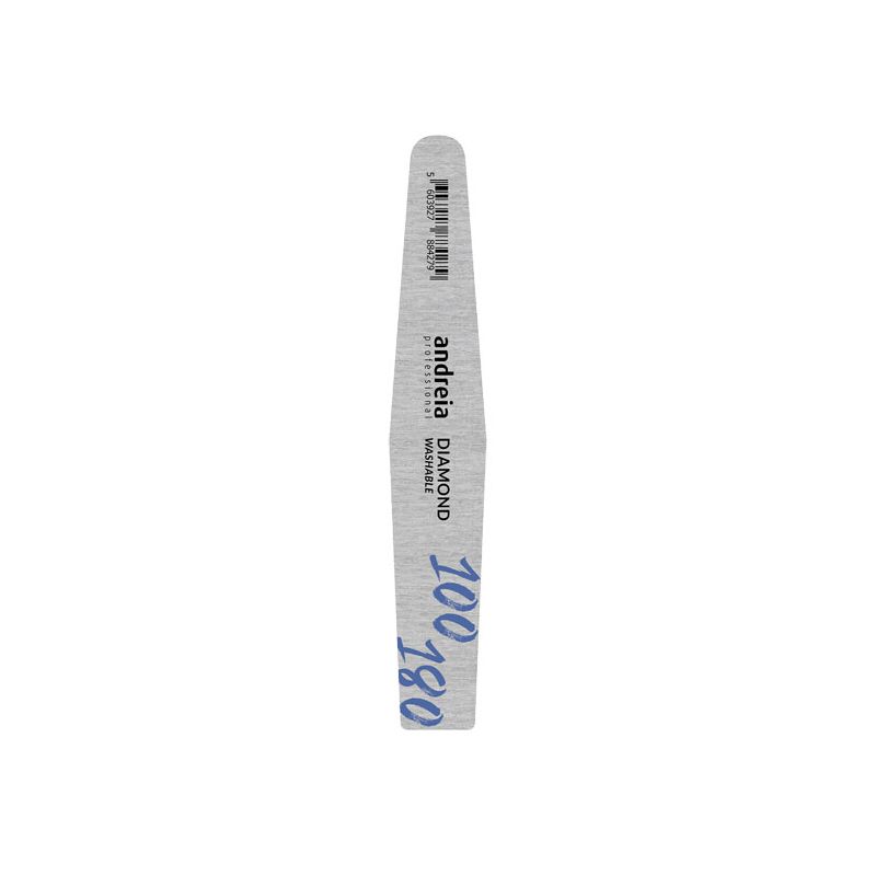 Diamantnagelfeile 100/180 Entdecken Sie die Effektivität der Diamantnagelfeile 100/180, hergestellt aus hochfestem japanischem Papier, für eine langlebige Nagelpflege. Ihre diamantförmige Form und die abgerundeten Seiten sind perfekt geeignet, um den unteren Bereich des Nagels und die Nagelhaut zu behandeln.