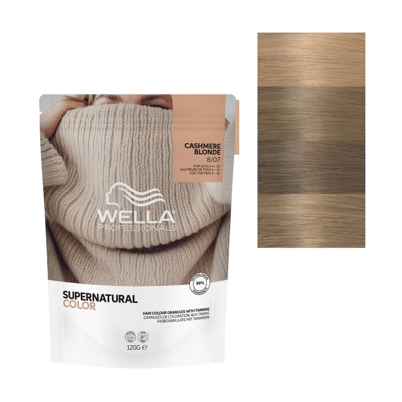 Entdecken Sie die natürliche Färbung Supernatural Color Hellblond Naturbraun 8/07 von Wella Professionals, die erste Färbung mit Gerbstoffen. Diese innovative Formel färbt, stärkt und repariert Ihr Haar. Ihre vegane Formel mit bis zu 100 % Inhaltsstoffen natürlichen Ursprungs bietet eine vollständige Abdeckung von grauem Haar und strahlende Ergebnisse, die von natürlich bis intensiv reichen.