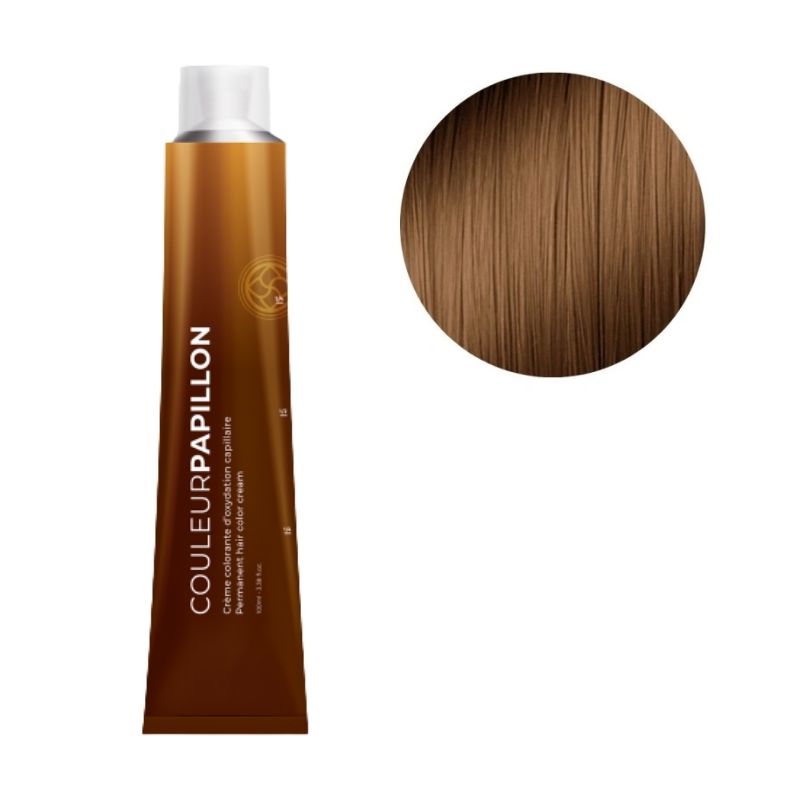 Der Farbton 8.34 Helles Goldblond Kupfer aus der Reihe Farbe Schmetterling Coiffance ist eine professionelle permanente Haarfärbung, die ein strahlendes, helles Blond offenbart, das warmgoldene Reflexe und leuchtende kupferne Nuancen vereint. Ideal, um Licht und Tiefe in das Haar zu bringen und gleichzeitig ein lebendiges und anspruchsvolles Ergebnis zu gewährleisten.
