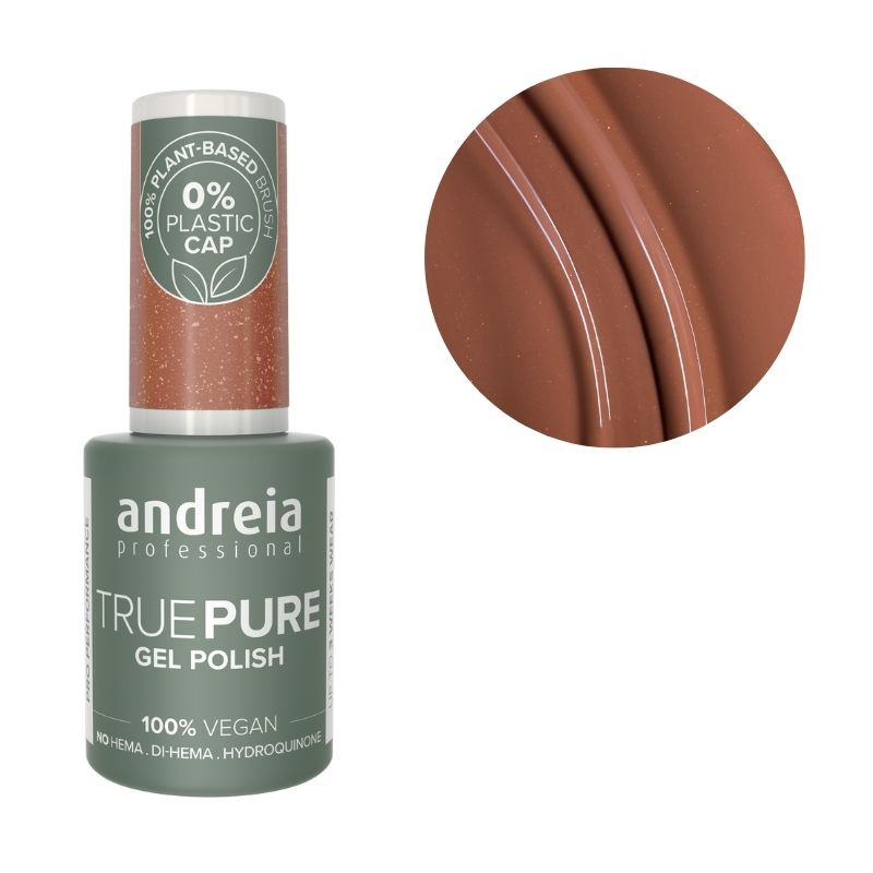 TRUE PURE – Die neue Reihe von Gel-Nagellacken von Andreia Professional, formuliert ohne HEMA, Di-HEMA oder Hydrochinon. 100 % vegan, geruchlos und ohne Lösungsmittel. Entwickelt, um das Risiko von Irritationen zu minimieren, ist er perfekt für empfindliche Nägel und Haut. Seine lösungsmittelfreie Formel garantiert eine stabile Farbe bis zum letzten Tropfen. Bietet einen professionellen Halt von bis zu 3 Wochen mit strahlenden Farben.