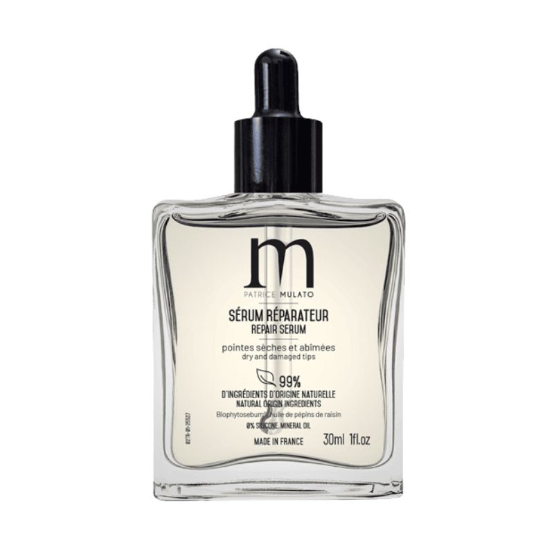 Adopt the Repairing Serum Mulato to effectively nourish and repair your hair. This serum is specifically formulated to treat dry and damaged ends. Enriched with Biophytosébum and grape seed oil, it restores softness and silkiness to your hair without a greasy effect, while leaving a delicately scented veil.