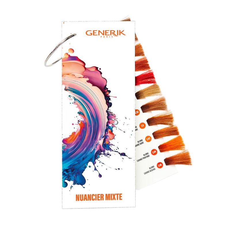 Discover the Color Chart 95 Shades Generik, an essential tool for hair professionals. This color chart offers a wide palette of colors, perfect for creating custom colors and unique highlights. Its clear and comprehensive presentation will help you make the best shade choice for each client.