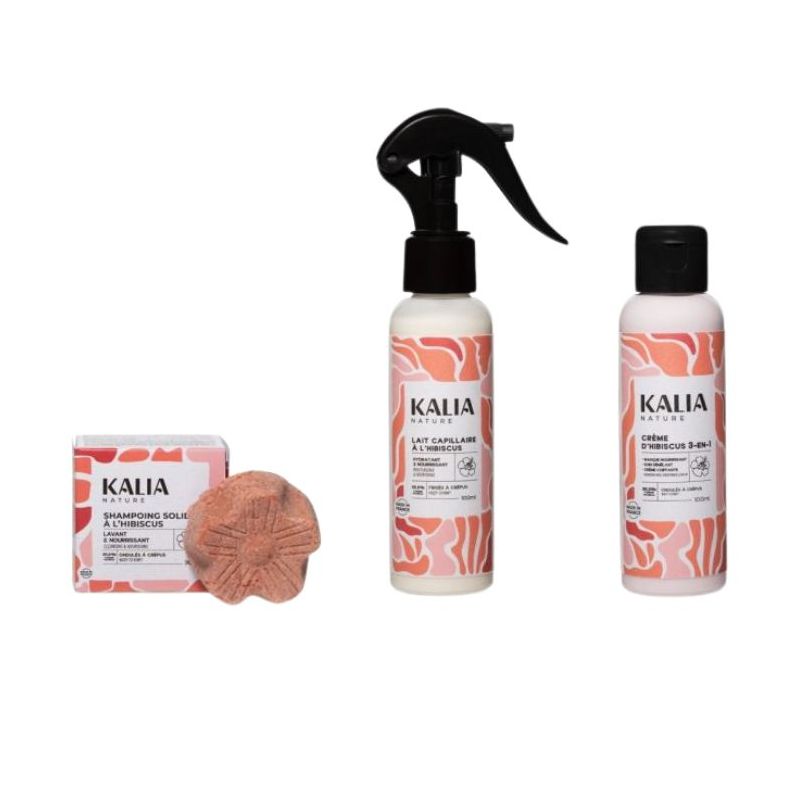 Hibiscus Discovery Kit Kalia Nature Discover the very essence of hibiscus with the Kalia Nature Discovery Kit, perfect for the whole family. This set contains three essential products: a solid shampoo, a hair milk, and a cream, all infused with hibiscus to revitalize and hydrate your hair, regardless of its texture.