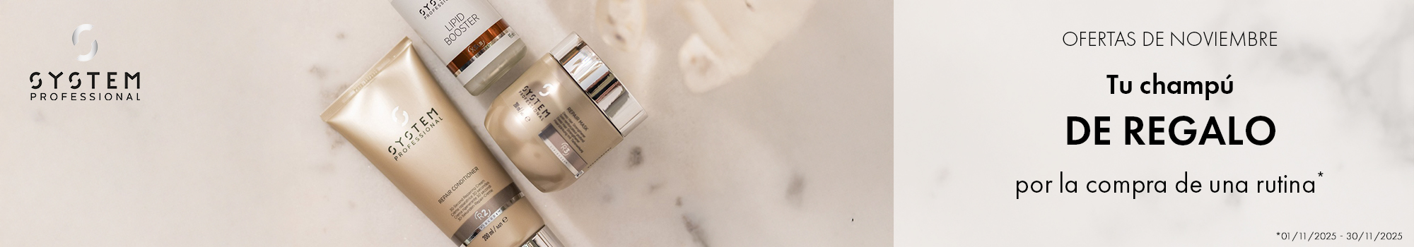 Descubre nuestras ofertas especiales System Professional, una ocasión única para disfrutar de cuidados capilares profesionales a precios reducidos. Reconocida por su experiencia y personalización, la marca System Professional ofrece productos altamente concentrados en activos, diseñados para satisfacer las necesidades específicas de cada tipo de cabello: hidratación, reparación, protección del color, brillo o control del frizz. Ya seas profesional de la peluquería o particular en busca de calidad de salón en casa, estas promociones exclusivas te permiten cuidar de tu cabello con productos de alta gama mientras ahorras.