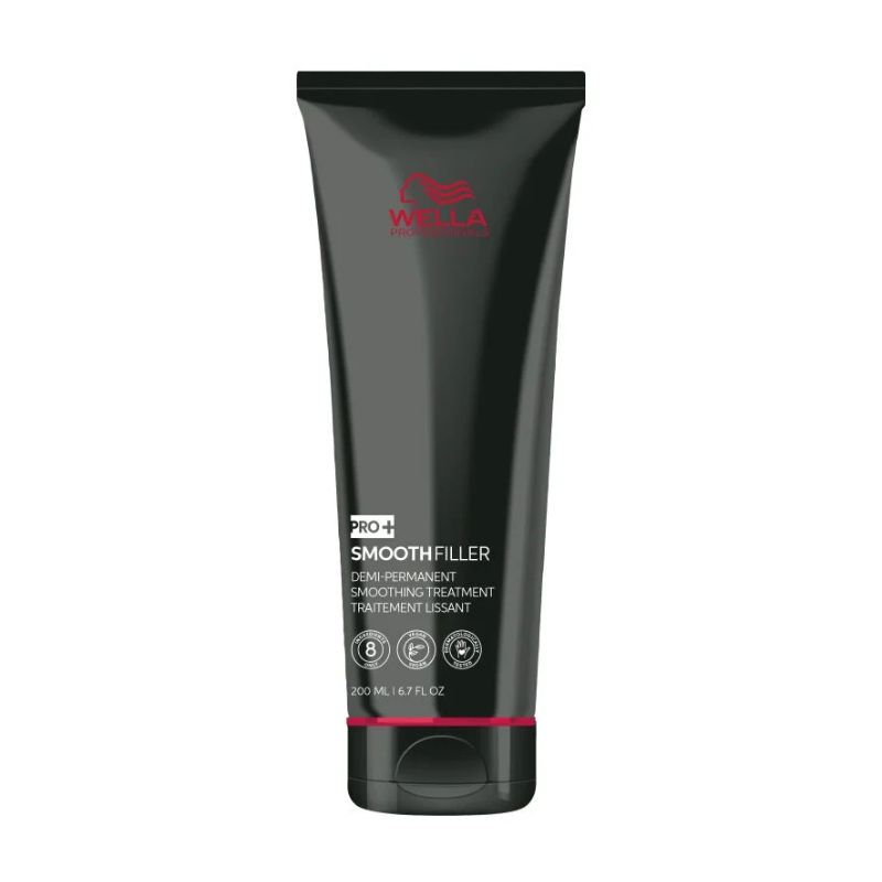 Tratamiento alisador Pro+ Smoothfiller Wella 200ml Descubre SMOOTHFILLER, el tratamiento disciplinante semipermanente con tecnología patentada por Wella Professionals. Este tratamiento alisador reestructura el cabello mientras ofrece un efecto anti-frizz de hasta 3 meses. Ideal para un peinado fácil, es compatible con los servicios de coloración el mismo día y no requiere ninguna restricción de mantenimiento después de su uso. Con una fórmula de baja emisión de humo y sin olor, el Smoothfiller asegura un tacto suave y natural.