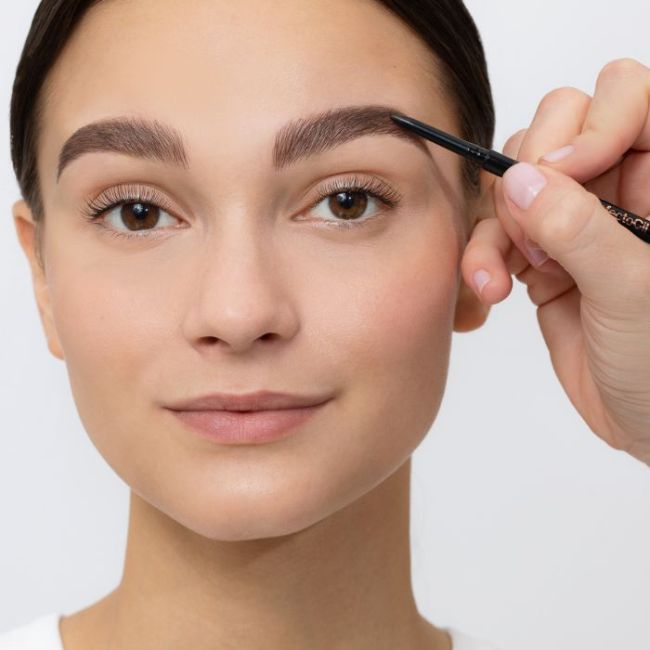 Aplicación : Delinea las cejas con el Full Brow Liner y da forma a las cejas con el cepillo integrado.