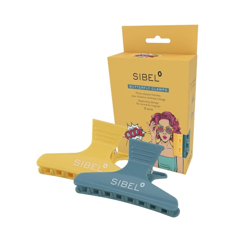 Pinzas mariposa Pop Art Sibel - Pinzas mariposa Classic Elija las Pinzas Mariposa Pop Art Sibel, unas pinzas de gran tamaño diseñadas para mantener mechones largos de cabello sin deslizamiento. De uso múltiple, estas pinzas son perfectas para alisar, dar forma, secar, teñir, cortar e incluso entrenar. Se adaptan a todo tipo de cabello o extensiones. Cómodas y versátiles, sujetan firmemente sus mechones sin aplanarlos, gracias a su diseño pop art en 4 colores.