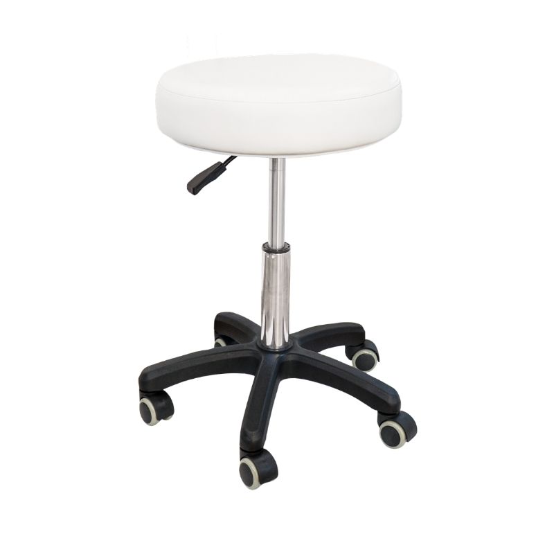 Aporta estilo y confort a tu espacio profesional con el Taburete de salón Beauty Sibel. Este taburete estético giratorio cuenta con un asiento redondo de espuma de alta densidad cubierto de cuero sintético blanco. Su diseño ergonómico y su altura ajustable ofrecen un confort óptimo, mientras que su base de nylon asegura una gran estabilidad.
