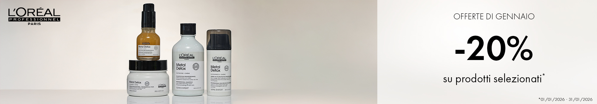 Métal Détox è la garanzia professionale per le tue colorazioni, scansioni o decolorazioni. Dopo un servizio tecnico, il capello assorbe i metalli presenti nell'acqua. Durante l'incontro tra l'ossidante e il metallo durante l'ossidazione di un servizio di colorazione o di spazzolatura, i capelli sono soggetti a un notevole rischio di rottura e il colore ne risentirà...