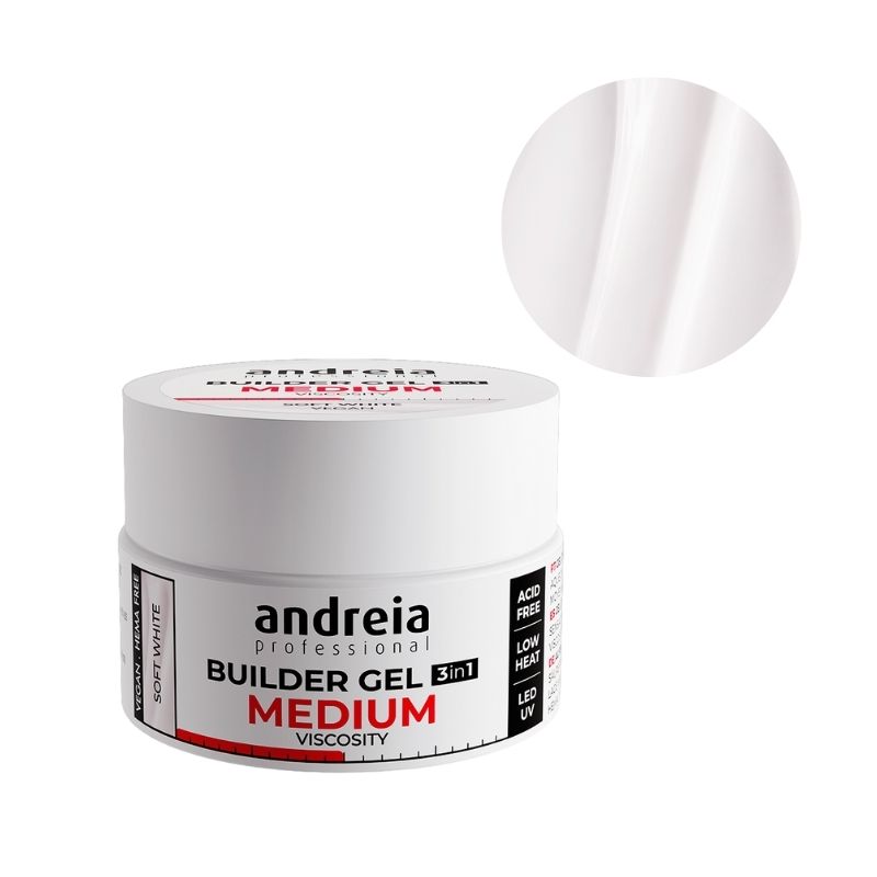 Scopri il Gel di costruzione viscosità media Soft White Andreia nel formato 22Gr, adatto a ogni fase della cura dell'unghia grazie alla sua formulazione 3 in 1. Il suo autolivellamento e la sua texture fluida permettono risultati impeccabili senza eccessivo calore.