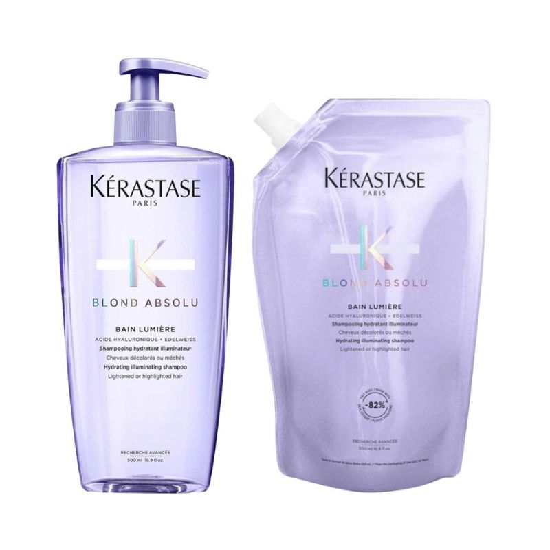De Duo Bain Lumière Blond Absolu Kérastase is speciaal geformuleerd voor natuurlijk, geverfd of gebleekt blond haar. Deze hydraterende shampoo verlicht het haar terwijl het de haarvezel zachtjes reinigt.