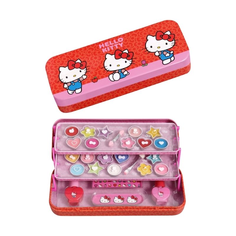 Ontdek de make-updoos met 3 lagen Hello Kitty, ontworpen voor een optimale organisatie van je schoonheidsproducten. De drie vouwbare plateaus bieden een snelle en praktische overzicht terwijl ze een compact formaat behouden. Met zijn speelse en functionele ontwerp is het de perfecte accessoire voor alle jonge fans van Hello Kitty.