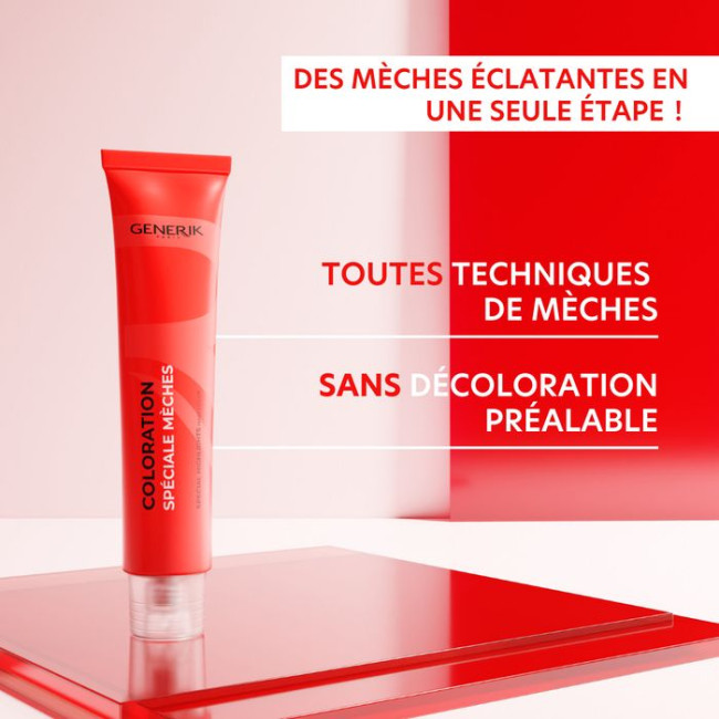 Aplicação: Aplicar em cabelos secos não lavados, deixar agir 35 minutos ao ar livre e depois enxaguar abundantemente. Em seguida, aplicar o shampoo Générik pós-cor e um tratamento Générik