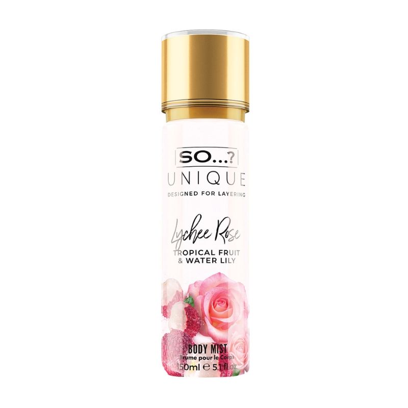 Desfrute da delicadeza da Bruma para o corpo Lychee Rose So…? Unique 150ml, uma fragrância luminosa e feminina que combina a frescura suculenta do lichia com a suavidade romântica da rosa. Uma senteur sofisticada que respira sensualidade e envolve a sua pele com um véu de suavidade.