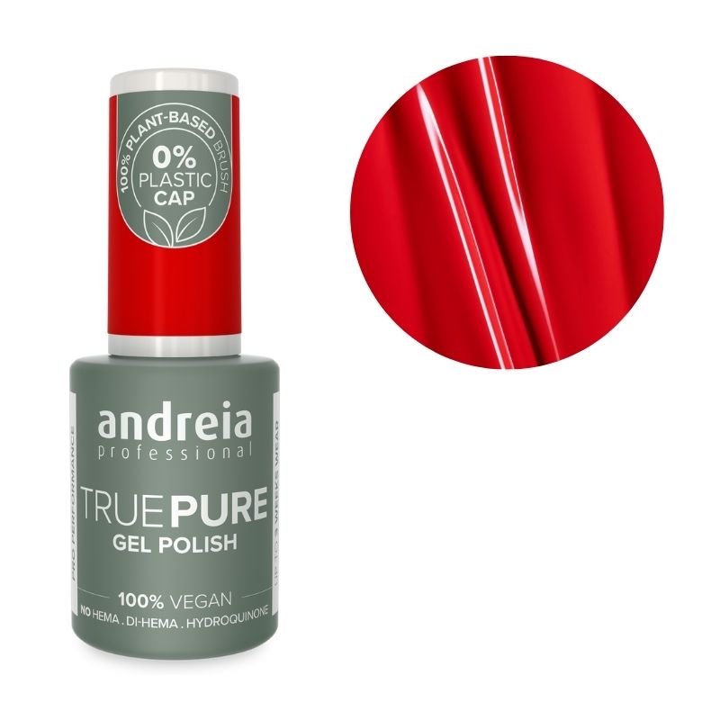 Descubra o "TRUE PURE T36" da nova gama de vernizes em gel Andreia Professional. Formulado sem HEMA, Di-HEMA ou hidroquinona, este verniz é 100 % vegan, inodoro e sem solventes. Especialmente concebido para unhas e peles sensíveis, a sua fórmula suave reduz os riscos de irritação, garantindo uma cor preservada até à última gota. Aproveite um desempenho profissional com uma durabilidade de até 3 semanas e cores ultra-pigmentadas com acabamento brilhante, compatível com LED e UV.