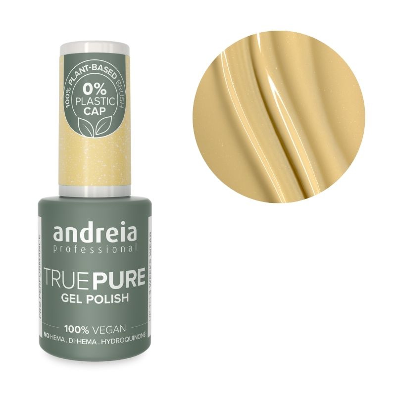 TRUE PURE – La gamme avancée de vernis gel d'Andreia Professional, conçue avec une formule sans HEMA, Di-HEMA et hydroquinone. 100 % vegan et sans odeur, adapté aux peaux sensibles. La formule préserve la couleur pour une utilisation optimale et offre une performance professionnelle avec une tenue allant jusqu'à 3 semaines, compatible avec les lampes LED et UV.