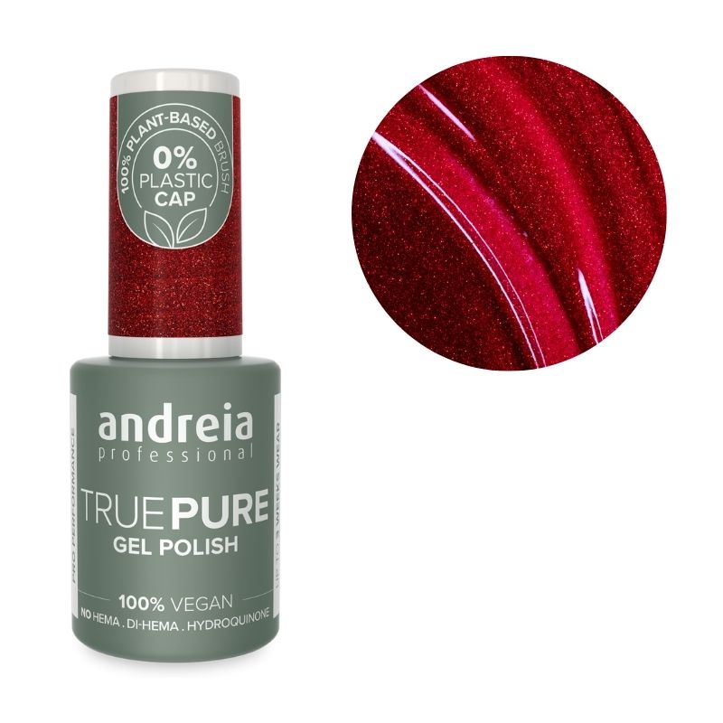 Vernis semi-permanent sans HEMA True Pure T39 Andreia 10,5ml Le vernis gel "TRUE PURE T39" d'Andreia Professional vous offre une innovation sans HEMA, Di-HEMA, et hydroquinone, adapté aux ongles et peaux sensibles. Ce produit 100 % vegan, sans odeur, assure une couleur et une efficacité prolongée. Sa formule assure un rendu professionnel avec une tenue remarquable de 3 semaines et une superbe brillance. Ce produit est compatible avec LED et UV et combine engagement écologique avec son design biodégradable et pinceau recyclé.